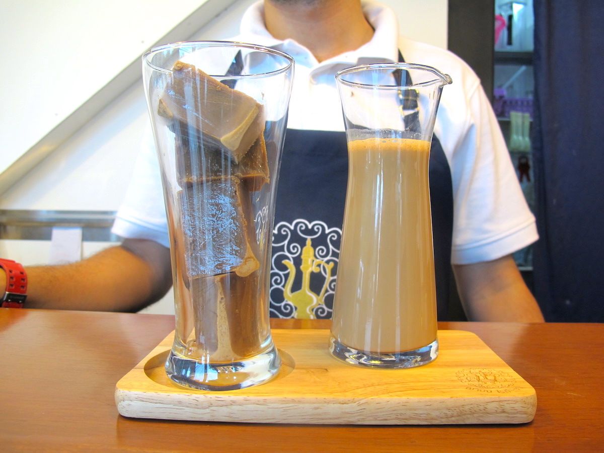 The signature drink is shabeebee or iced milk Indian tea (THB20). The tea is served separately with frozen tea cubes. Pour the tea over the ice cubes, and you’ll get an iced milk tea. These frozen tea cubes maintain the flavor of the beverage.