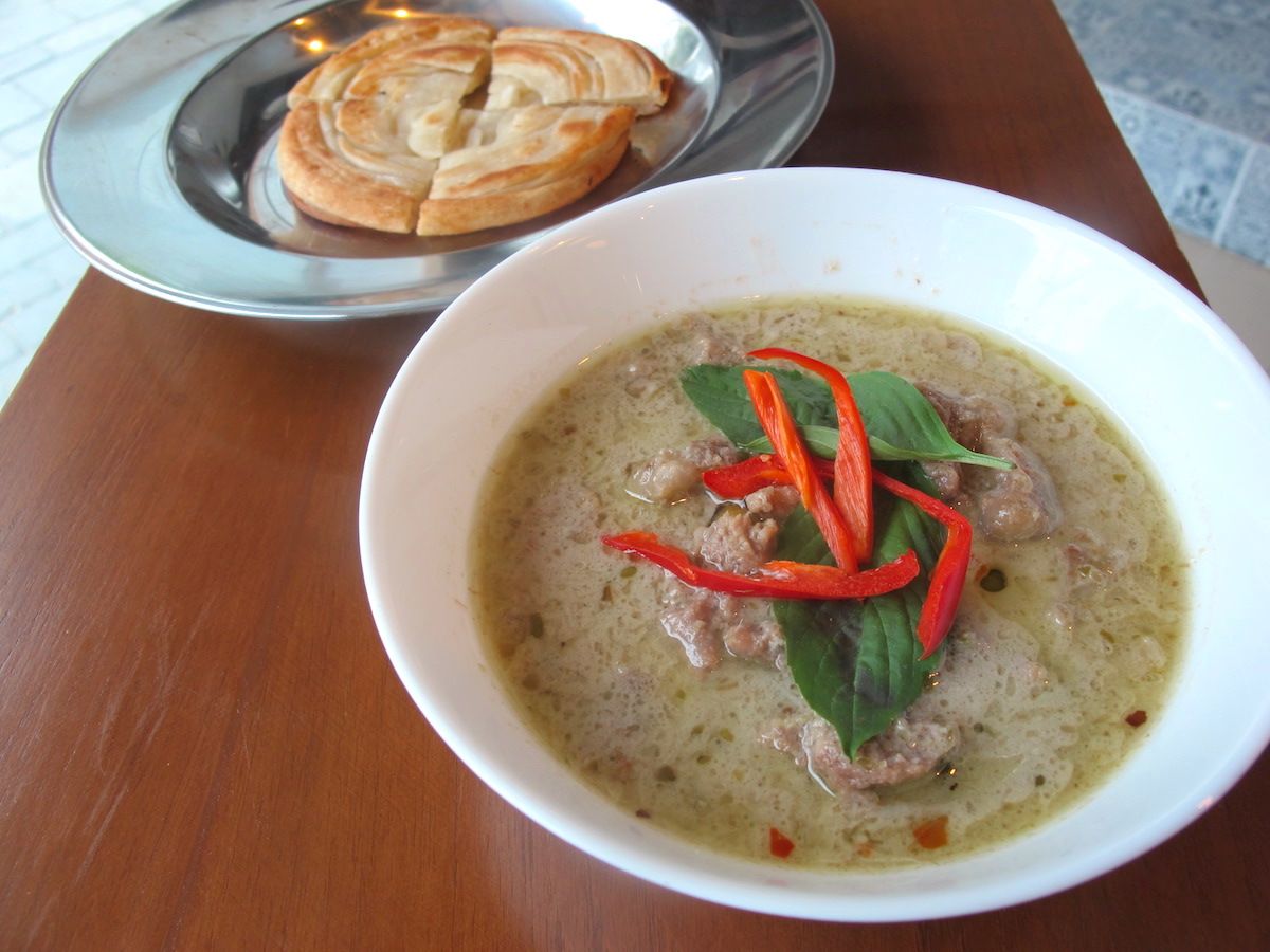Roti with beef and green curry (THB125) is not for those with a sweet tooth. Unlike most fatty, sweet green curries you find elsewhere, Shabeebee’s green curry is savory and rich with aromatic herbs. The tender beef in the curry goes well with the roti dough.