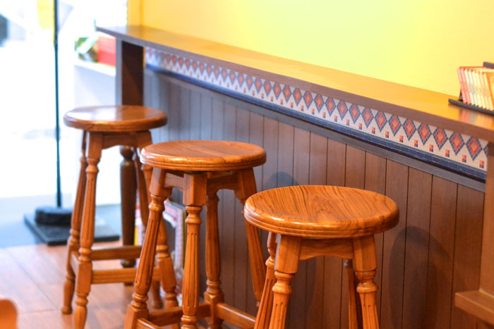 Sitting in a tiny space all but hidden between drug stores and massage parlors, its entrance faces stairs leading up to the BTS platform. Just step inside the doorless cafe, and one is greeted by Latin music and bright walls half in saffron, half in colorful tile mosaic.