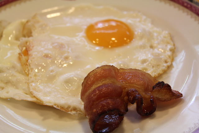For THB69, the American Breakfast will provide you with two eggs done any style, orange juice or pineapple juice, coffee or tea, bacon or ham, toast and jam and a glass of water. The eggs are greasy and the bacon substantial, which makes them an excellent hangover remedy. Order it on a lazy Sunday or get it in as a late night snack to stave off a massive headache. For the more adventurous breakfast seeker there’s a special dish being served right now called a “Breakfast Pizza Omelet,” which is comprised of a bed of scrambled eggs festooned with sausages atop a crust.