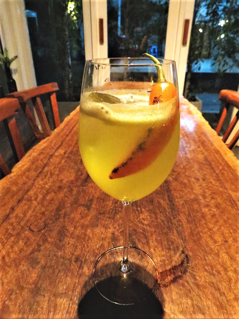 Sweet Jesus is a flavorful mix of standard Thai ingredients including Chili-infused tequila, fresh pineapple juice, lime, and cilantro.