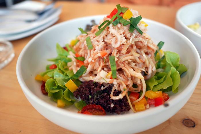 The menu may suggest quite a diverse variety of dishes — pastas, noodles, veggie rolls and sandwiches, but a large number of these mains are pretty much different mixes of fancy salad-liked dishes. Neither of the two pasta dishes I tried contained traditional pasta. Each contained a unique type of mock pasta noodle made of a fruit or vegetable.