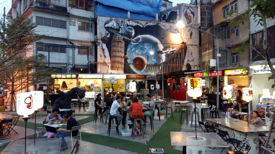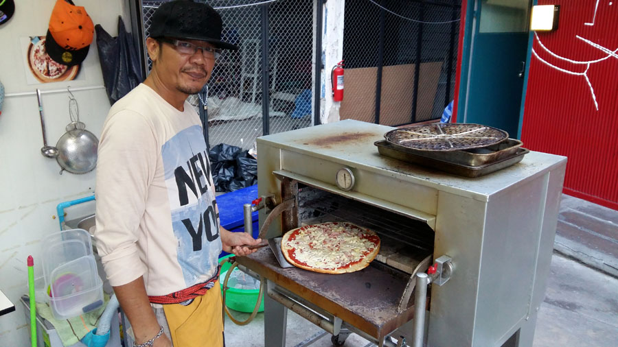 It all happens in the W District’s “beer garden” or “food court,” depending on your personal perspective and primary mission, where Who’s Pizza serves up some of the best and most easily customizable slices in Bangkok.