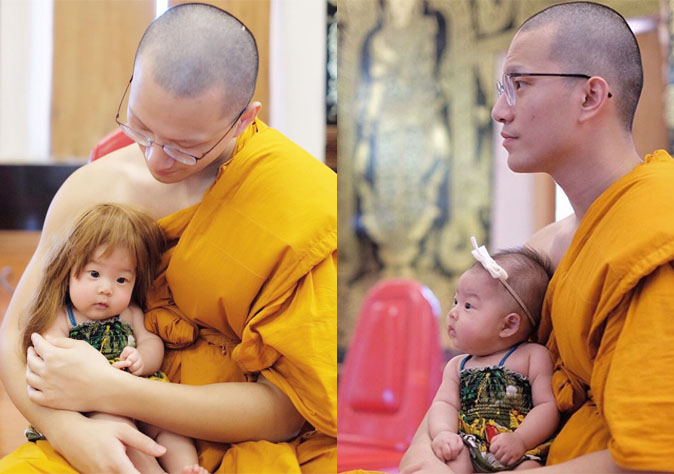 TV singer Thassapak “Bie” Chii and his actress wife, Sumontip “Gubgib” Chii, found themselves at the center of netizen hatred yesterday after Gubgib posted a picture of her husband, who is temporarily ordained, holding their daughter.
