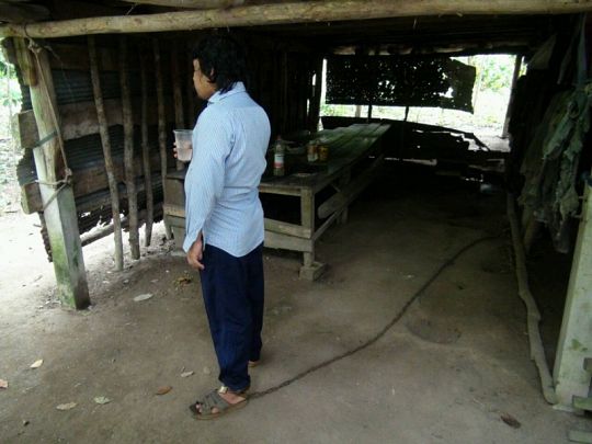 Restricting the 37-year-old man was a padlocked chain attached to his ankle and a post. On a wooden bed counter, there were dishes and bottles.