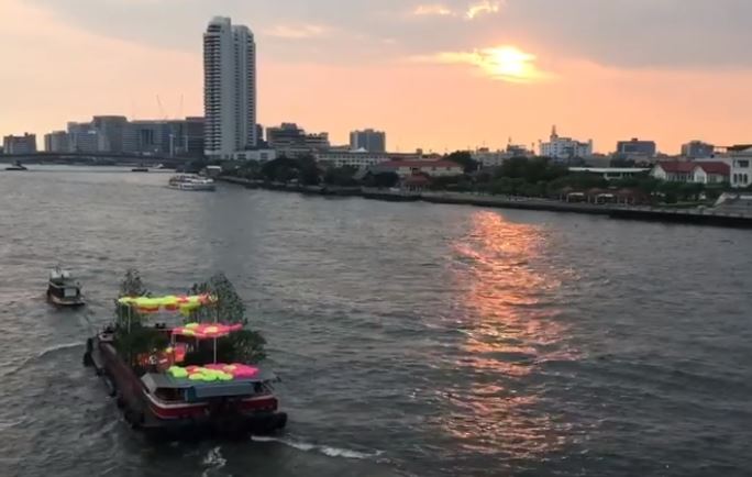 Check out the “park” as it floated toward a blazing Bangkok sunset on Friday while a fan filmed from Rama 8 Bridge above: