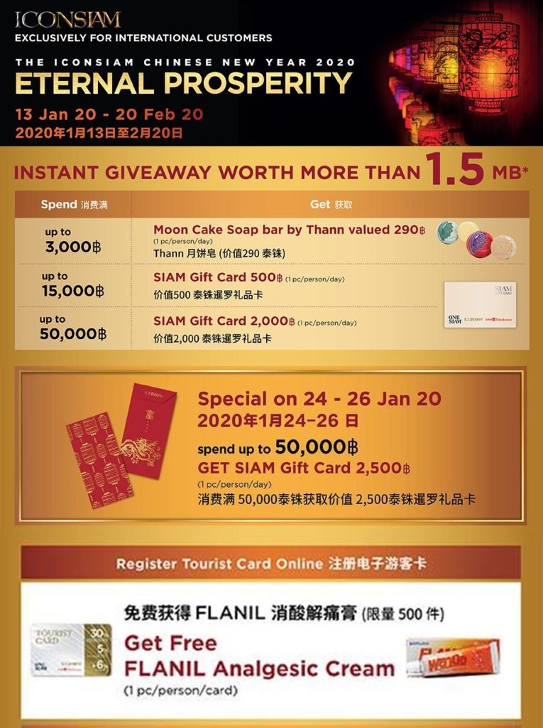 Do you know that you can get a Flanil Analgesic Cream for free by just filling this ICONSIAM’s tourist card application form here? For more information about their CNY promotion and activities, head over here.
