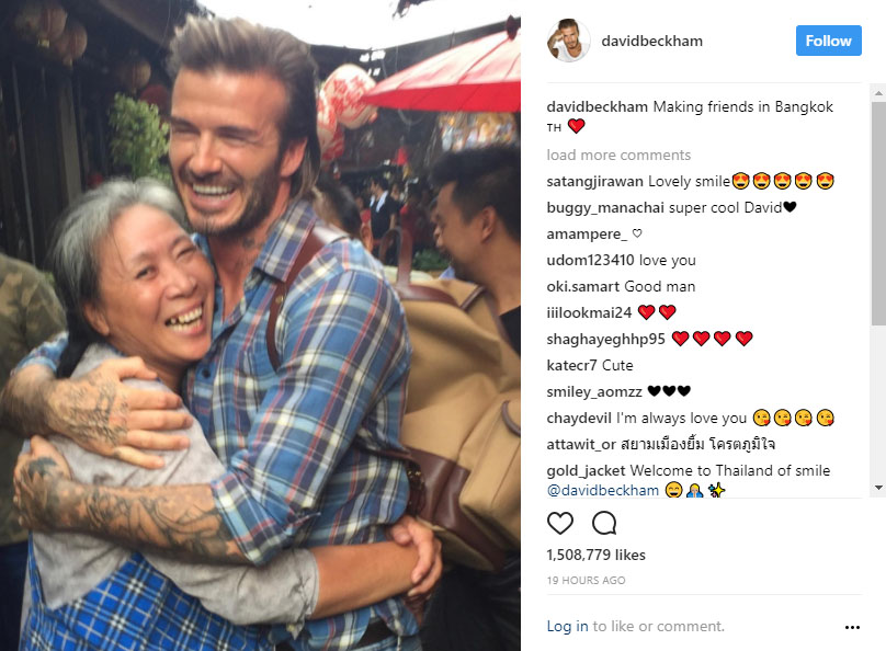 Sports icon and all-around celebrity David Beckham was in Bangkok over the weekend where he Instagrammed himself “making friends” with locals in the city.