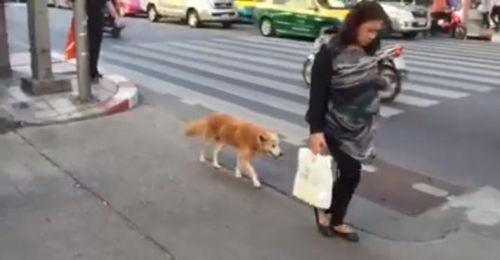 The video of a cute stray waiting for the crossing light in front of Midtown Asoke shopping mall so he could cross the road was shared on Facebook Monday by user IK LunnLaa.