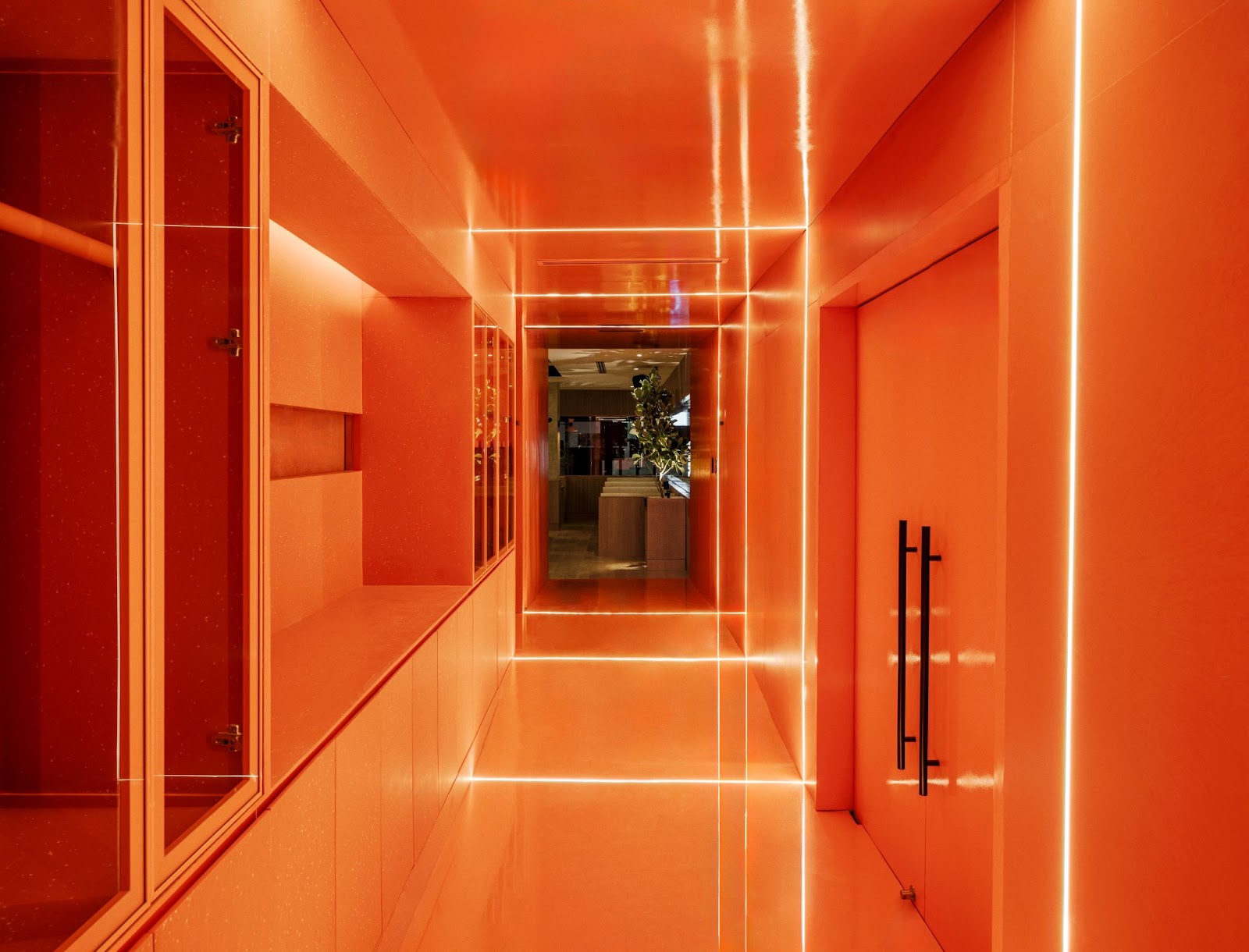 Working with Bali-based Space Available Studio, Indonesian architecture atelier Sidarta and Sandjaja, and MORE (a program that transforms waste into valuable and eco-friendly resources), Siwilai was able to construct their orange exterior from over five tons of compressed industrial waste, and cover the 500 square meters interiors in recycled plastic.