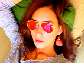 Less than 24 hours ago, we spotted Davika “Mai” Horne, a 21-year-old Channel 7 actress, boasting a casually sexy look that consisted of gold-metal-framed, green-mirrored Ray-Ban aviators, red jeans and a jacket. The photo garnered over 10,000 likes from her nearly 300,000 followers.