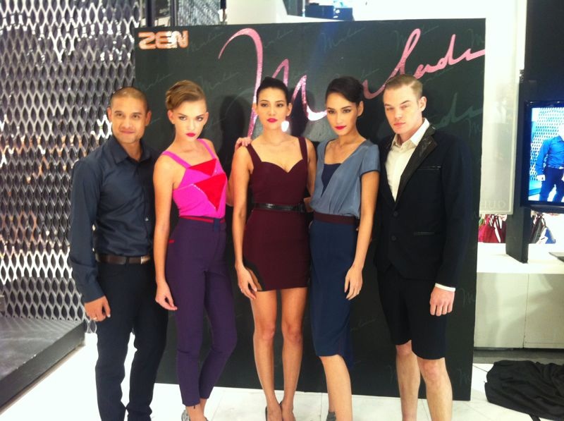As part of her Autumn/Winter 2012 “Freedomz Collection” sneak peak fashion show, we saw a total of five ready-to-wear outfits for men and women by Monlada. The first was a high-waist pencil skirt paired with a silky blouse, followed by a second outfit consisting of spandex slim fit high-waist trousers and a corset inspired top with geometry diamond shape patch detailing. The last item was a bustier satin maxi dress with sheer cut outs on the upper thigh and lower back – totally sexy. Of course we didn’t get to see the entire collection this time, but there are also a handful of swimwear options. For the men, celebrity model Mike Kingpayom modeled a dark blue collared men’s shirt while the other model wore a tailoring hand finished jacket with twisted collar detail that can be sported day or night.