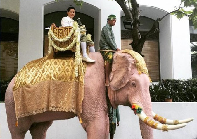 The couple had a Thai wedding as the Don was seen riding a white elephant as a part of Khan Mark or the groom parade.