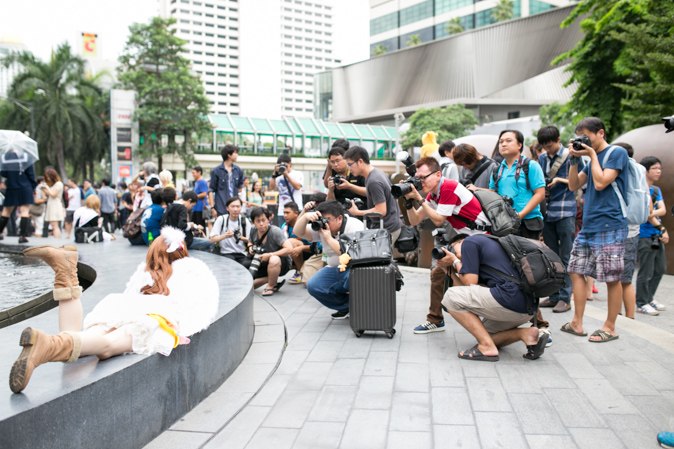 If they weren’t dressed up as something weird, most people there sported a DSLR equipped with a 30-centimeter lens in their backpack. It felt like a graduation ceremony, only with more eccentric gowns and photographers. I spotted only a few non-otaku taking selfies with the cosplayers.