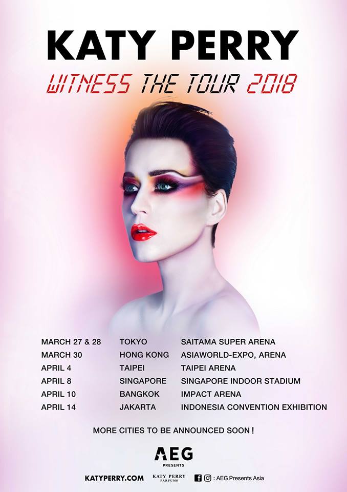 Two years after performing at a sold-out concert in Bangkok, American singer Katy Perry will return with her latest concert tour “Witness: The Tour” on April 10.