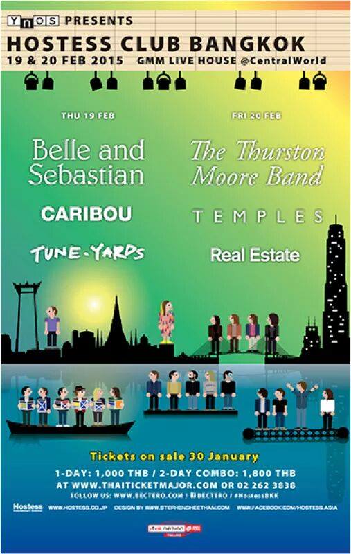 Yet individual bands continue to confirm, so we can dare to believe that next month Bangkok will see acts by Temples, Belle and Sebastian, Sonic Youth’s Thurston Moore, Real Estate, Caribou and others at The Hostess Club Weekender, a series of weekend minifests coming to Bangkok for the first time at GMM Live.