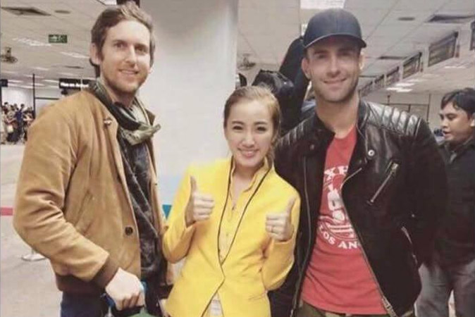 Photos of band members Adam Levine, Jesse Carmichael and James Valentine with Thai fans spread across the interwebs this afternoon. The boys just landed in Thailand today after a gig in Daegu, South Korea.