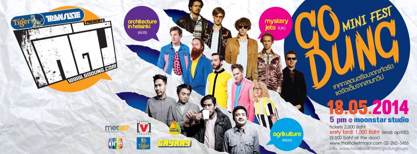 Three bands from as many continents, Mystery Jets (UK), Architecture in Helsinki (Australia) and Agrikulture (Indonesia) will rock the house at Moonstar Studio in the Wang Thonglang district.