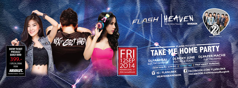 Flash is holding a special night at Heaven Bangkok (ZEN CentralWorld, Level 17) – a venue with a better-than-terrible 360-degree view. Live music by Z2 Band and American-style country line-dancing music. Just kidding: electro and house DJs Faahsai, Roxy June and Paper Mache will officiate.