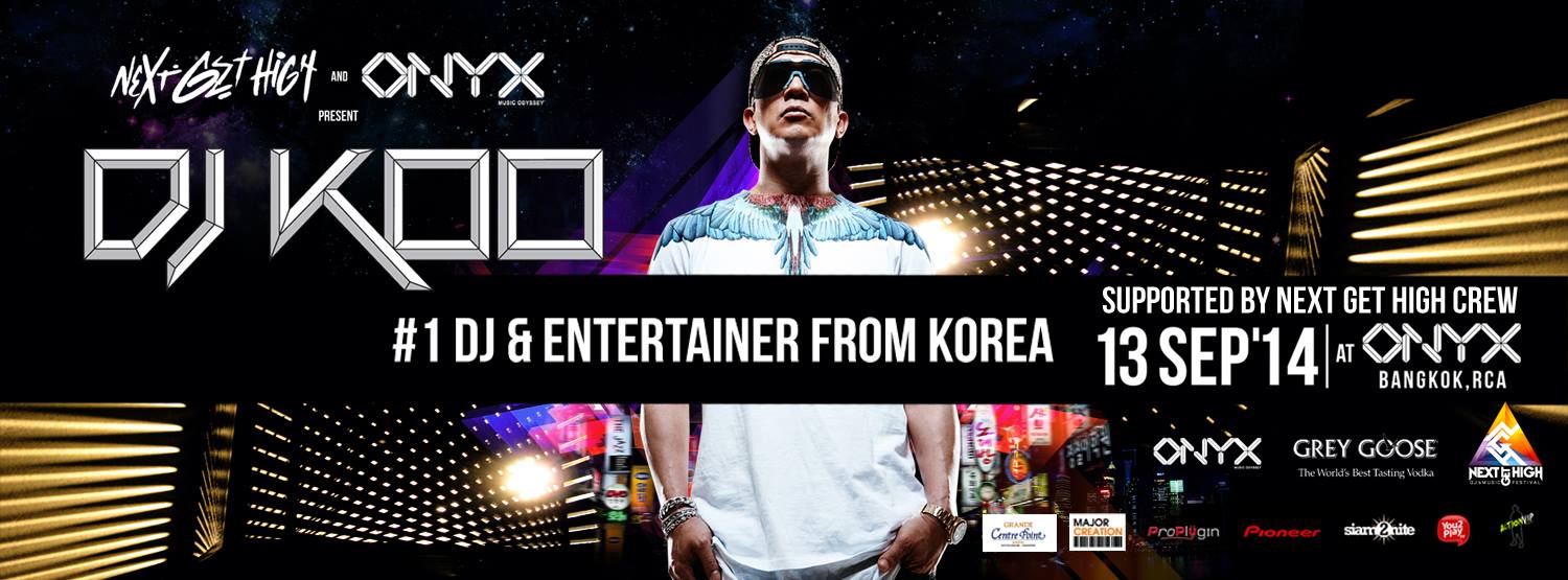 Next Get High brings DJ Koo – billed as Korea’s No. 1 DJ – to Onyx RCA. He is Resident DJ at Korea’s club Octagon and has played as the first and only Korean DJ at the Ultra Music Festival in Miami for three years. He also played at Ultra Korea and will play at Ultra Japan. His music is a mix of Electro and Progressive House.