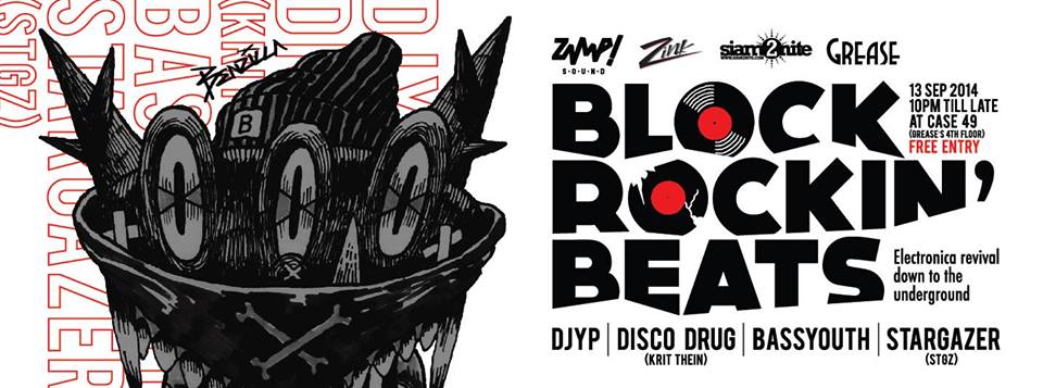 Zaaap! Sound returns to Grease (Soi Sukhumvit 49) for the fourth episode of BLock Rockin’ Beats – a night dedicated to quality electronica, bass music, electroclash, indie dance, just to on the safe side, some indie techno. This time the lineup features StarGazer (Superrzaaap), YP (Trasher), Disco Drug (Krit Thein) and Bassyouth.