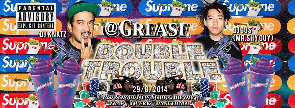 Double Trouble is back with old and new school hip-hop, trap, twerk, and dancehall – brought to you by DJ Knatz and Gus.