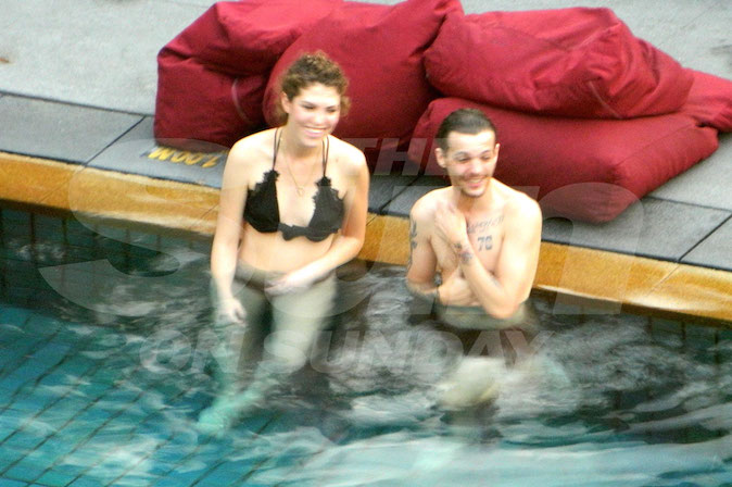 The photos were reportedly taken at an all-night pool party at Bangkok’s Sukhothai Hotel at 6:30am on the morning of their March 14 concert, The Daily Mail reported.