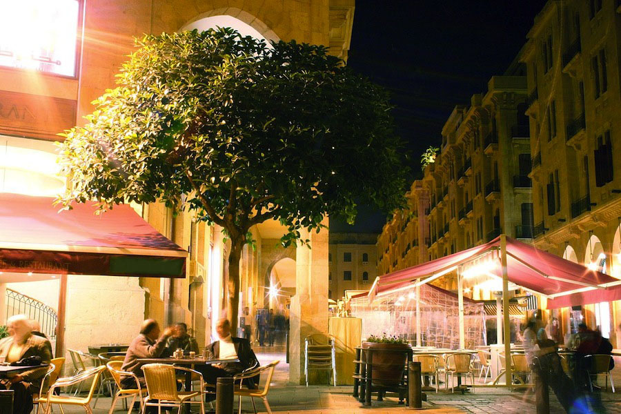 Locals enjoying beer at cafes in central Beirut, Lebanon. Photo: Bertil Videt/Wikimedia Commons