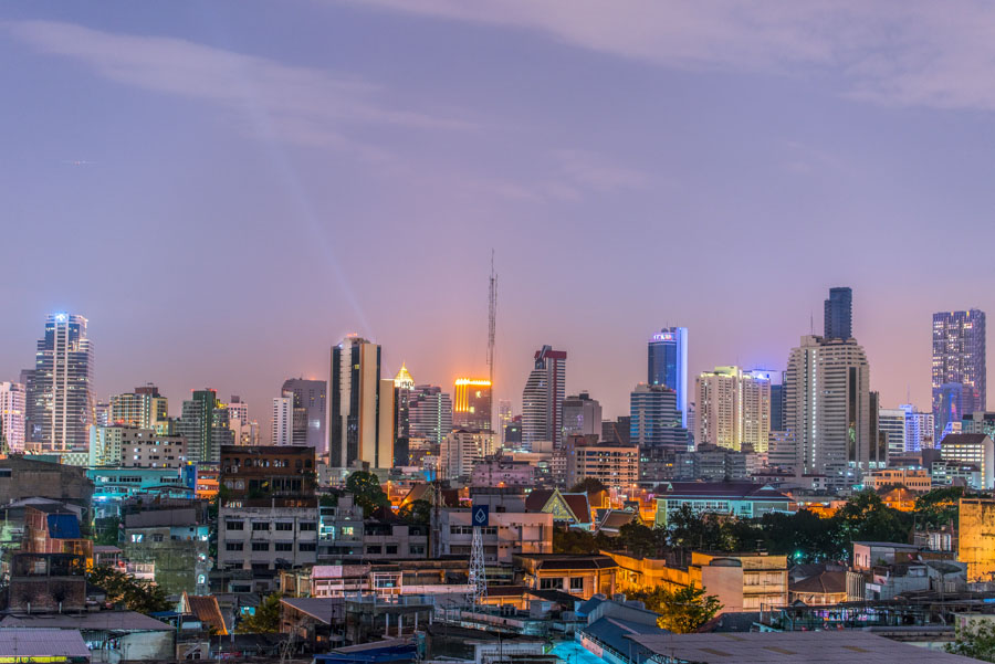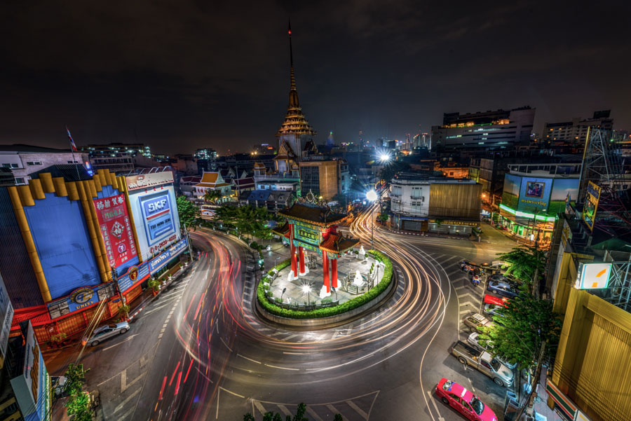 Our third vantage point is in Chinatown. It’s a popular spot among photo enthusiasts and sits in the parking lot in front of the Gate of Yaowarat. The parking structure is called Odean Parking and simply take the elevator to the top floor. Bear in mind however that on weekends this place becomes crowded around sunset with other photographers. However if you manage to get a good spot it’s totally worth it.