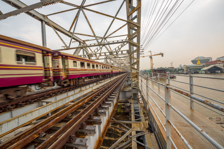 Specifically I recommend one of the more exciting of such vantage points is the railway bridge next to the Rama VII Bridge. It has a walkway, a riverside view of all the development projects, and trains that roar by at least twice an hour. It’s not easy to find the walkway up to the bridge, but with a little exploration and a GPS-enabled device, it’s a worthwhile hunt.