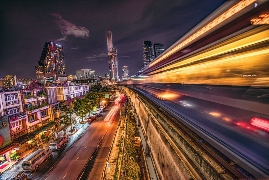 Many of these can be seen by simply stepping off at one of the many BTS Skytrain stations, waiting for the crowds to clear and walking to the end of the platform. If you use a DSLR, you can lower the shutter speed to get the blur of the train as it passes. However tripods are not allowed on BTS platforms, so for night shots steady hands are a must.