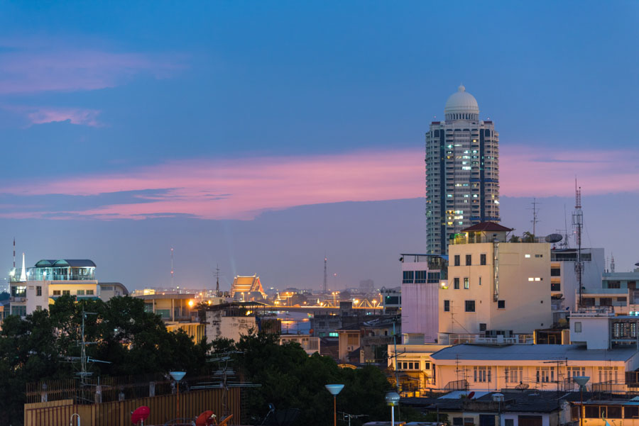 After you get your shot from the vantage point walk up to the roof to see an awesome skyline of Bangkok. It’s most impressive at sunset or in the early evening. The closest public transportation beside buses and taxis is MRT Hua Lamphong or the Marine Department Express Boat Pier. The shorter walk would be from Hua Lamphong.
