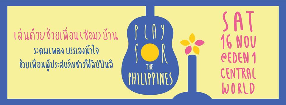Play for Philippines, benefit event by musicians and artists who will perform for a good cost will be held tomorrow at Central World shopping mall. Meet over 18 bands and artists while helping the storm-battered people of the Philippines who lost their homes to Typhoon Haiyan. The revenue will go to Habitat for Humanity, a global organization which helps build housing for the needy.