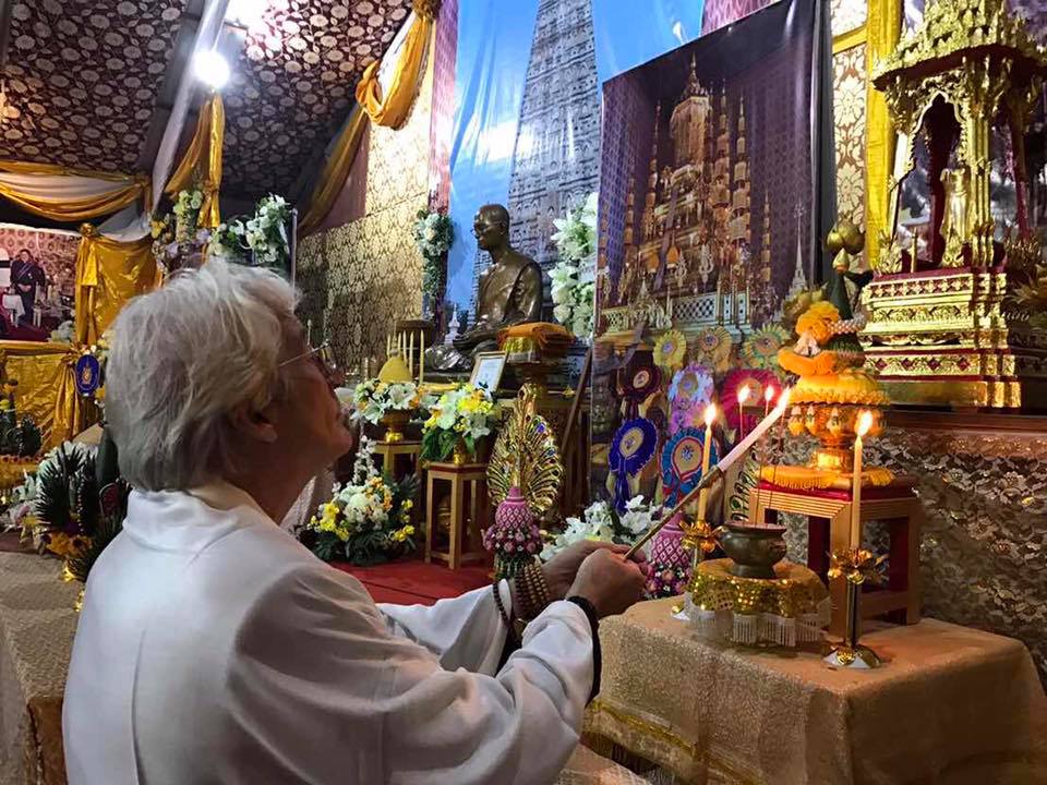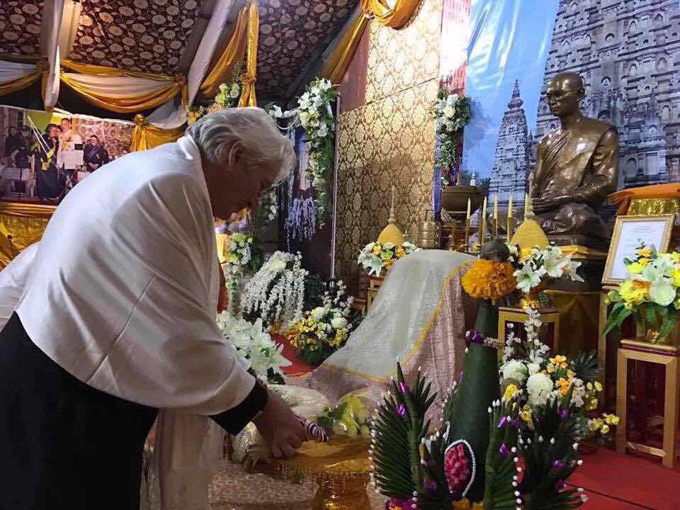 During his in pilgrimage through India, the 67-year-old Hollywood star met and discussed Dhamma with the abbot of Royal Thai Monastery Kushinagar on Sunday, where he also spoke about the late king, according to the temple’s Facebook post.
