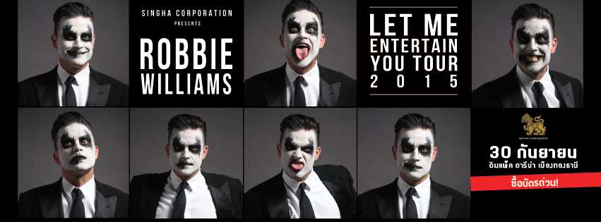 “Singha Corporation Presents Robbie Williams in Bangkok” is going down at Impact Arena, Muang Thong Thani for a range of ticket prices starting at just 2,000 THB.