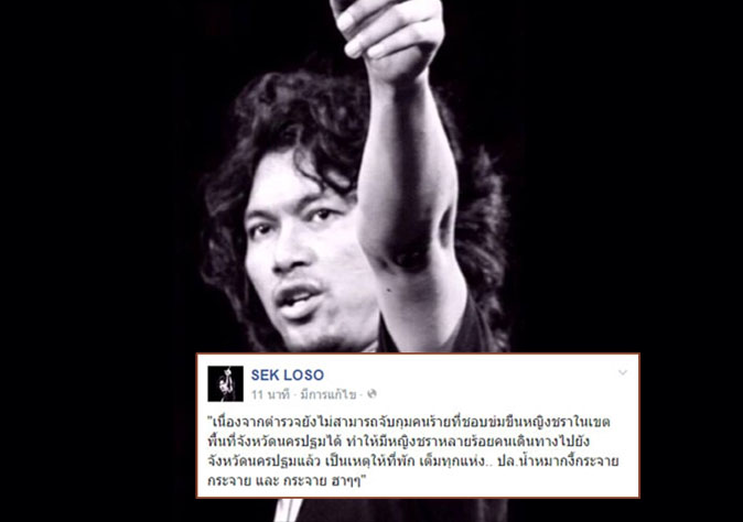 Sek Loso took to Facebook today to talk about the serial rapist believed responsible for the sexual assault of 10 women, mostly seniors over 70, in Bangkok’s outlying communities with comments that were pretty much universally reviled.