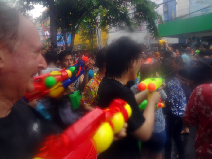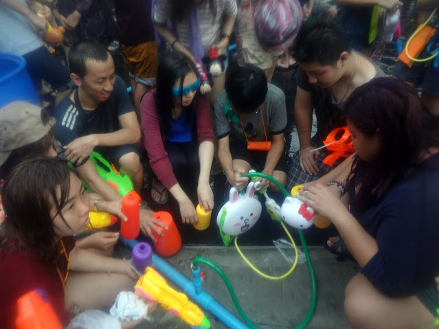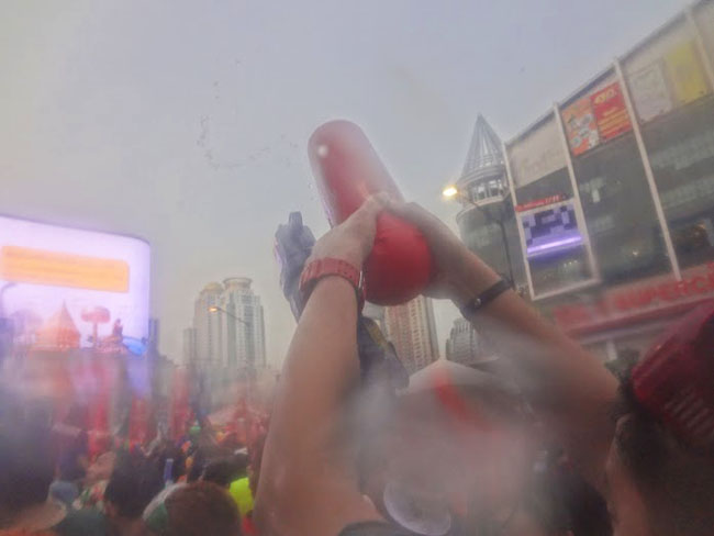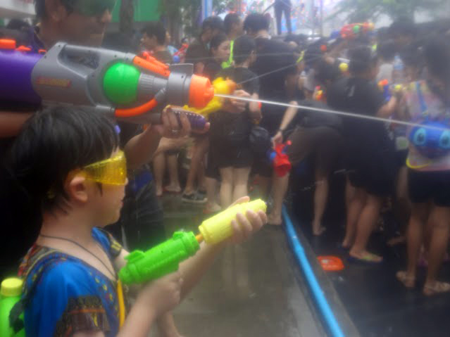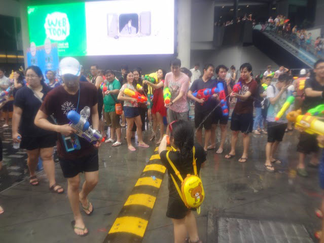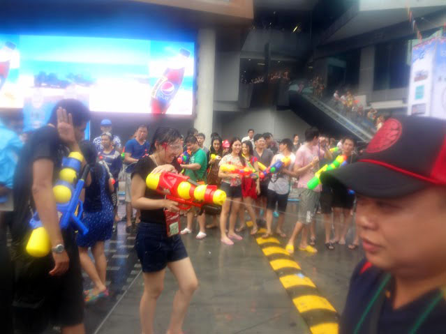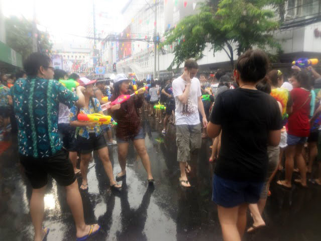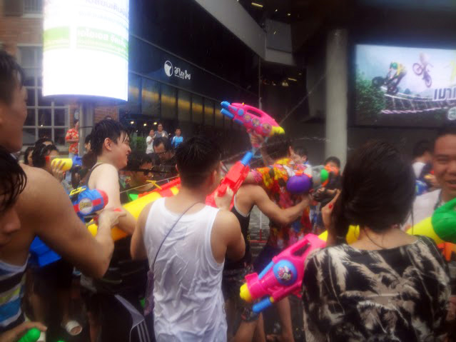 Siam Square and Central World descended into slippery chaos during the past couple days as crowds of Songkran revelers and warriors played and fought.