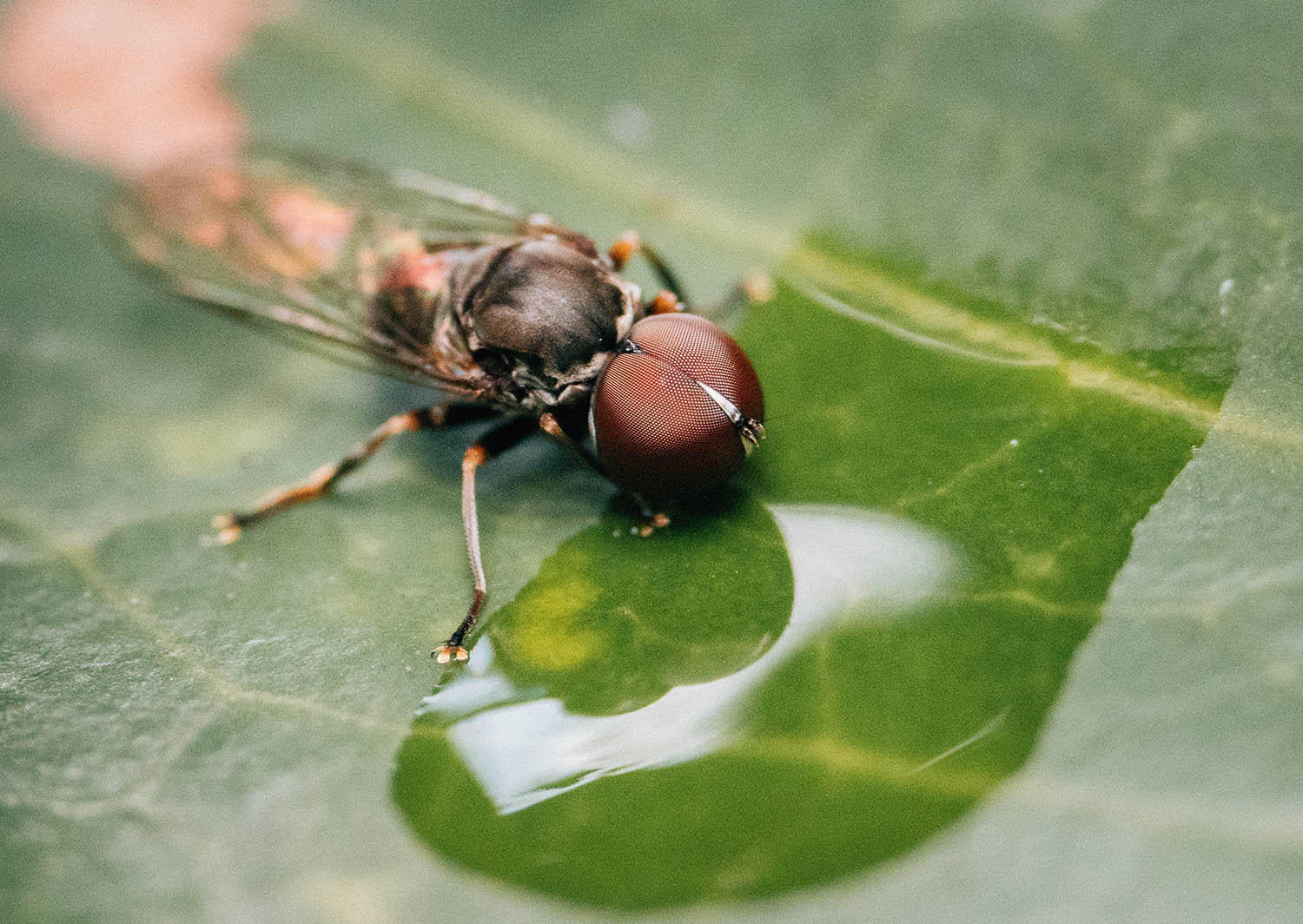 Attaching the macro lens for the first time, I walked out on the balcony to find a fly, a flesh fly, Sarcophaginae. It was a friendly first subject: the ideal size for 1:1 magnification and very still because it was waiting for me to die, so it could lay eggs in me.