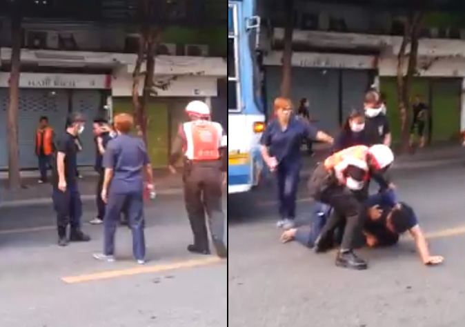 We can only imagine the accumulation of grievances that led these two men, driving the same route for competing companies, to slam their buses into each other on Sutthisan Road, leap from their doors and throw the gauntlet down in a midday street brawl.
