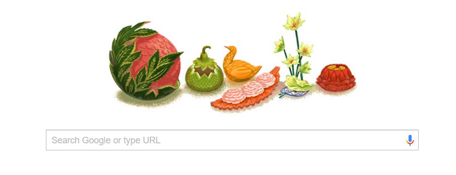 The adorable Google Doodle features illustrations of Thai fruits carved into fantastical shapes such as a duck, a boat and flowers.