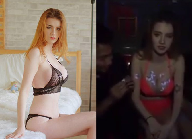 Looks like Irish internet idol Jessie Vard still hasn’t quit the sexy biz as a video of her bikini-clad self letting Thai men put stickers on her breasts at a Christmas Eve party was leaked online.