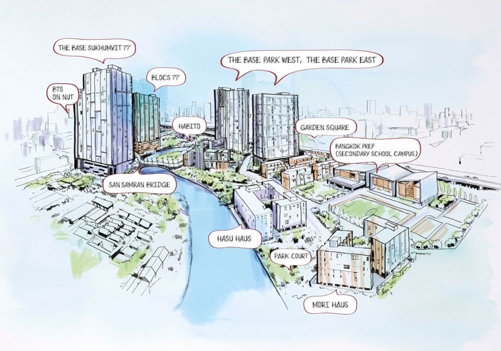 T77 community is made up of 5,000 residential units across 7 hip Sansiri projects including the townhouses of Garden Square, and 6 new condiminiums, Blocs Sukhumvit 77, THE BASE Sukhumvit 77, THE BASE Park West, THE BASE Park East, hasu HAUS, and mori HAUS. This isn’t even counting Park Court Grand Apartments, a premium development by M.K. Real Estate Development PLC that will open in late 2017. Besides simply looking great, these developments allow Bangkokians to get more nature in their daily lives. If there’s one thing we don’t have enough of in the Big Mango, it’s anything resembling grass (and cheese).