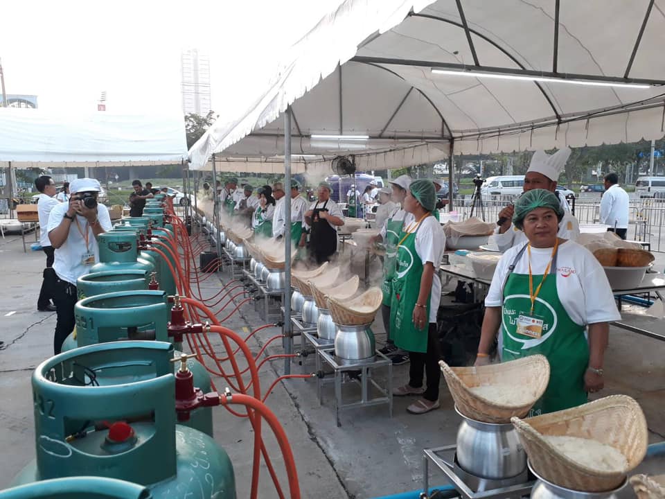 The banquet served up about 1,360 kilograms of sticky rice along with 6,000 mangos, for a total weight of about 4,000-4,500 kilograms, reported the Khaosod.