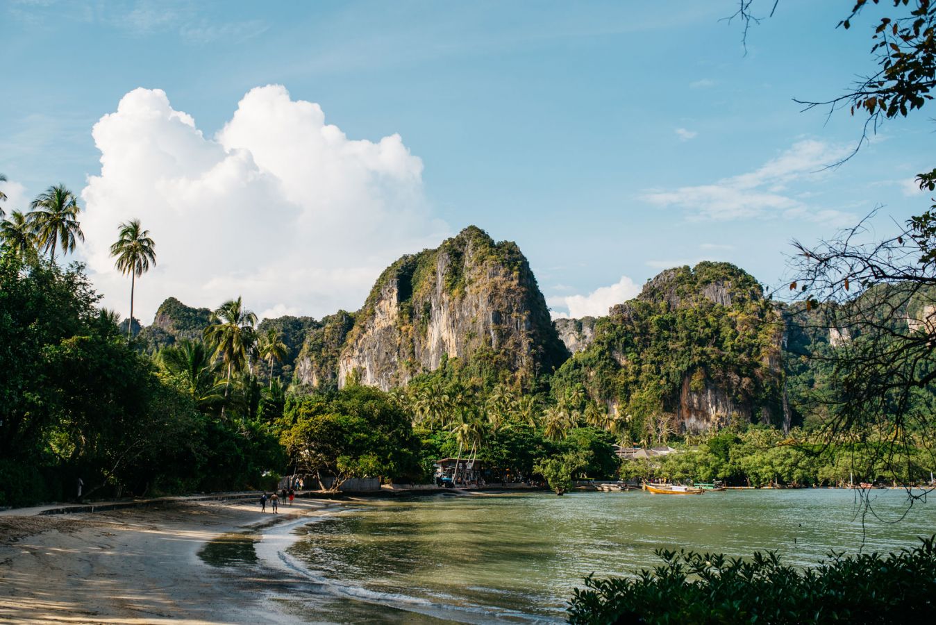 9. This view of Krabi’s Railay Beach with towering limestone karsts in the distance.
