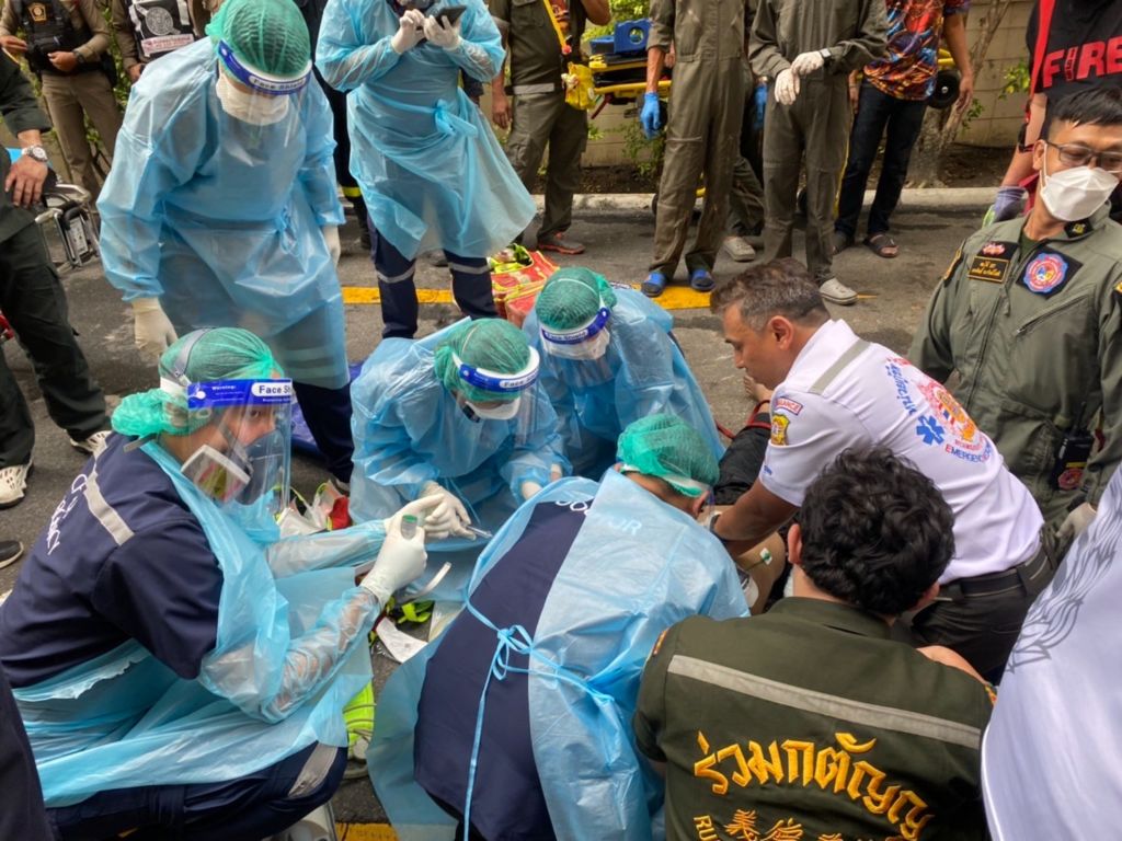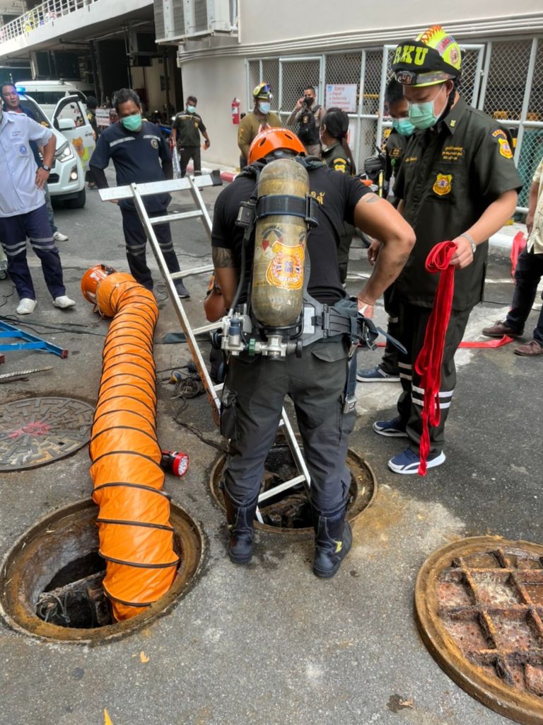 At around 4:30pm on Tuesday, Bang Na police were alerted that four men had not emerged from the maintenance shaft. Rescue workers spent about 20 minutes trying to retrieve them.