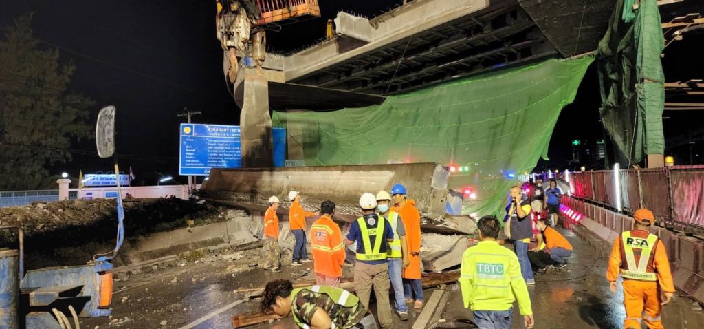 Two people were killed on Sunday night when a beam from a U-turn bridge on Rama II Road collapsed.