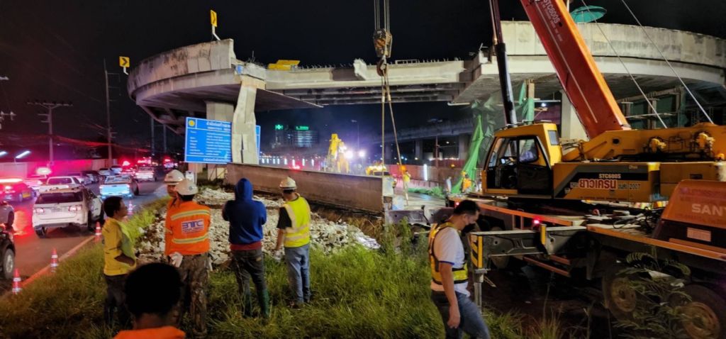 The flyover, which is also undergoing maintenance, is located in front of Vibharam Hospital on Rama II Road. The incident caused traffic jams on Sunday night and Monday morning. Motorists have been advised to use Highway No. 375 (Ban Phaeo – Phra Prathon) instead.
