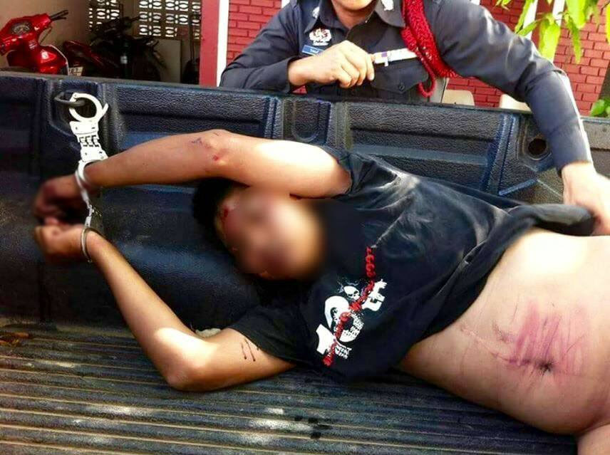 Locals of Chaiprakarn district seized and beat the killer, Asapa Siwua, 24, before handing him over to police after he went on rampage and slaughtered the five children who were playing next door to his house.