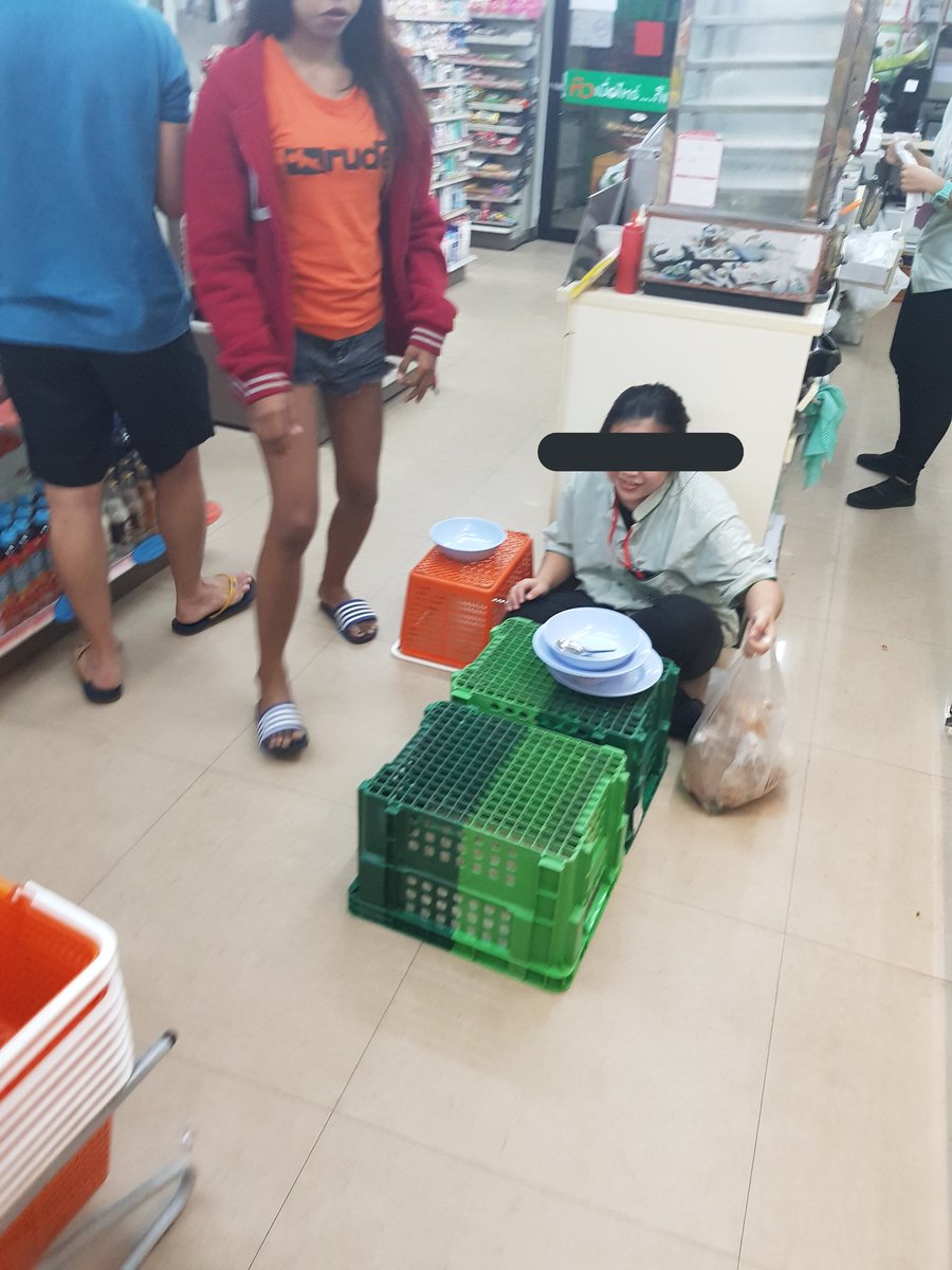 CP All, the company that runs Thailand’s ubiquitous 7-Eleven convenience stores, today said they have warned employees who were photographed over the weekend eating their dinner in the middle of the store, using shopping and storage baskets for tables.
