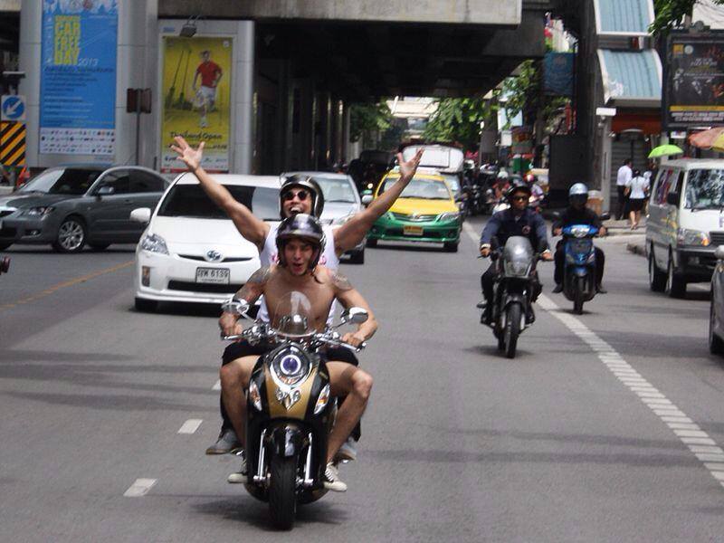 Pedestrians walking down Sukhumvit may have caught a strange sight yesterday when a scantily clad man barreled through the streets on a motorcycle.